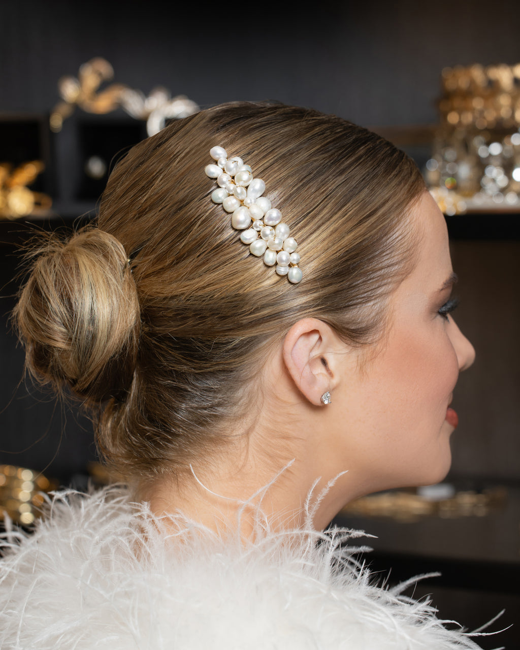 Minimal in design, this gorgeous all fresh water pearl comb is the perfect finishing touch.