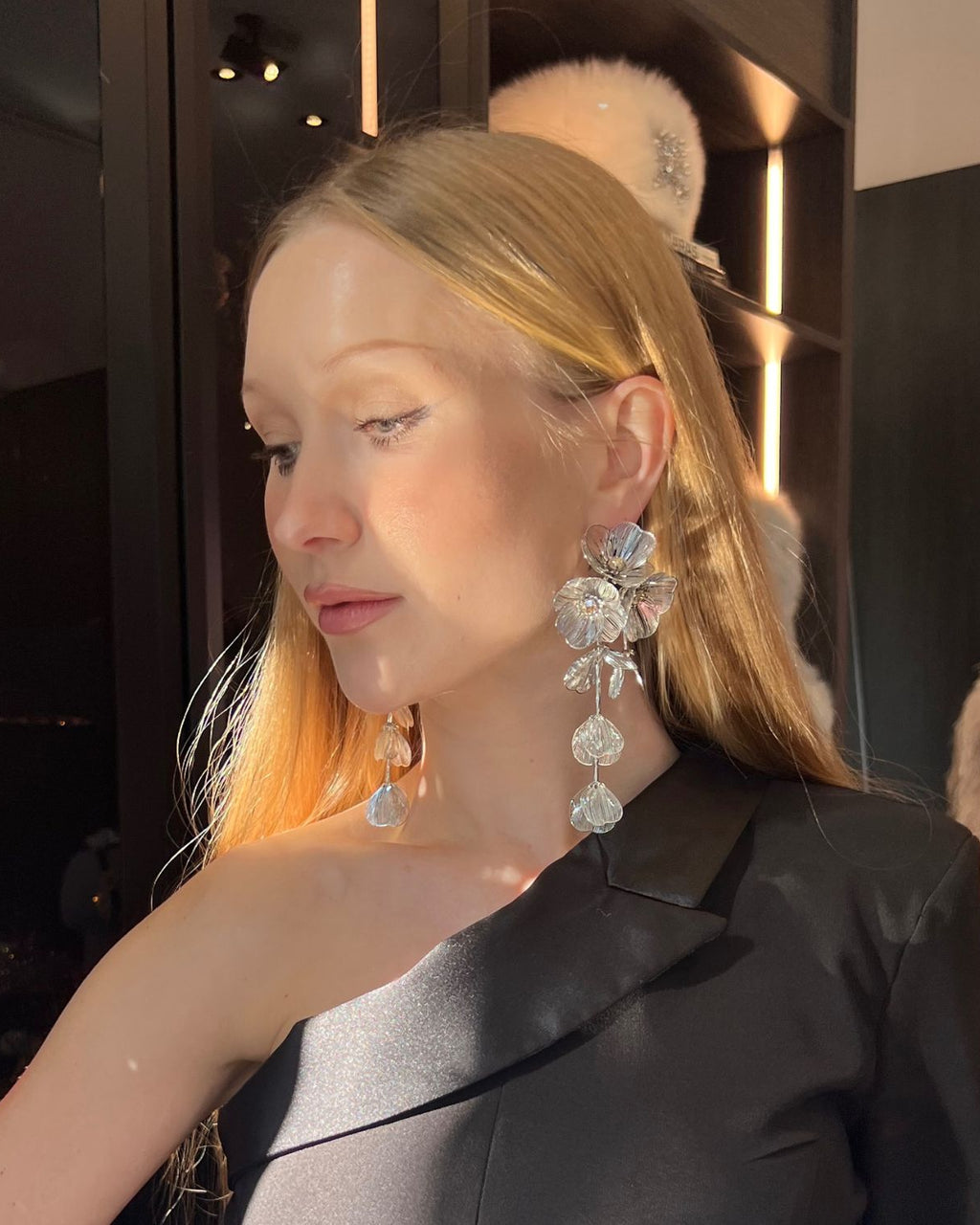 Right and left sides flatter the face. Made with Swarovski golden shadow crystal centre flowers.