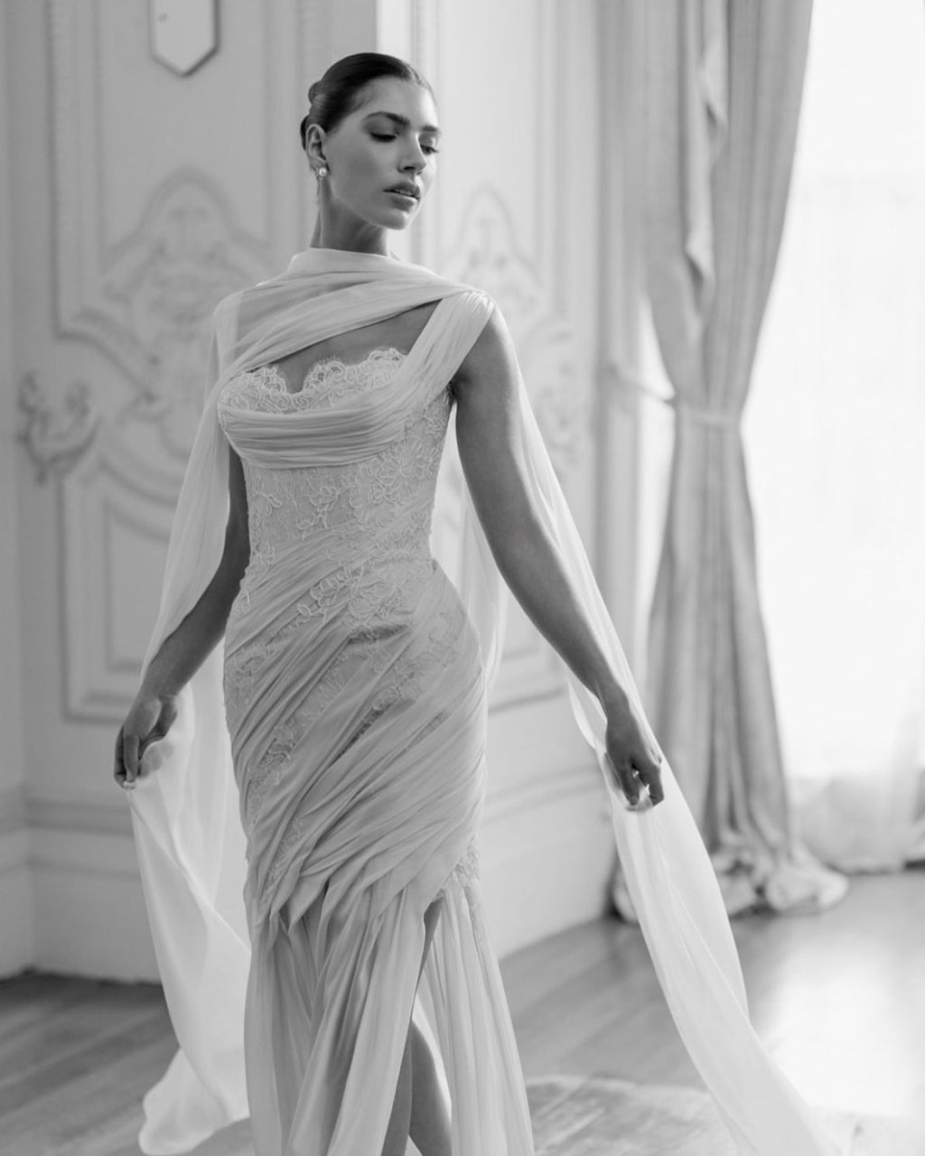 Designed to wear with right and left sides to frame the face.