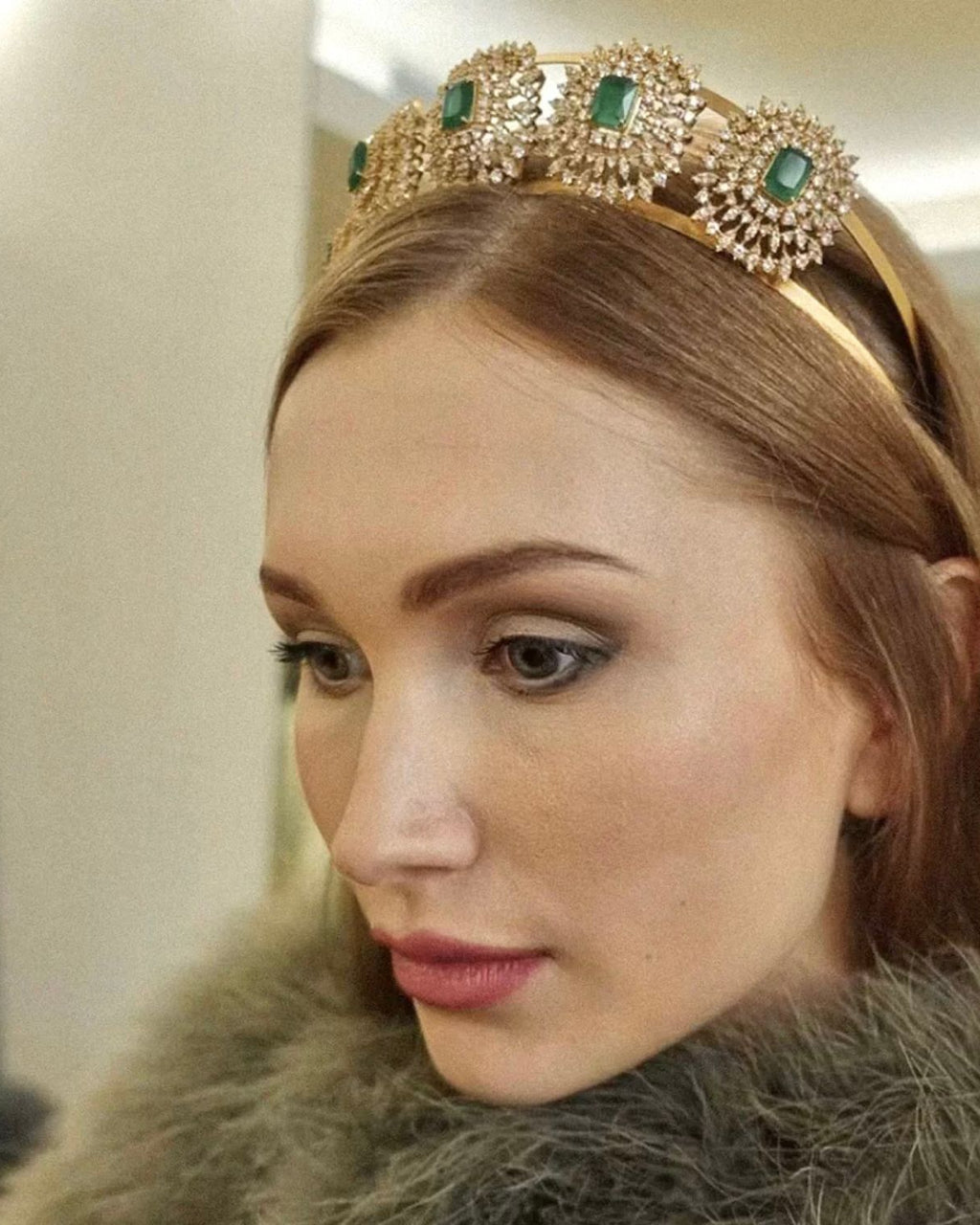 The stunning Lalita Headband is created and made in our Melbourne workrooms by our artisan jewellers, this unique headband is not only beautiful but comfortable to wear. Available as pictured in Gold with Emerald or in All Rhodium with clear stones.